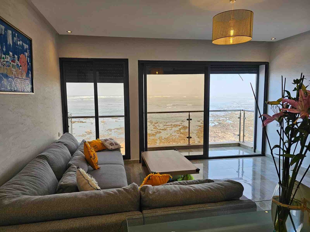 New apartment Beachfront with a spectacular Sea view and 2 balconies. A nice workspace with 100 Mbps WiFi Internet over fiber. Located in downtown, Medina, Souks, Restaurants and the Portuguese City are 15 min walk away. The city beach is a 20 min walk. PRM think about a taxi. Well equipped and carefully decorated for a cosy comfort and an unforgettable stay. Enjoy the sunrise, the scenic view, the clapotis or the calm. Cleanliness, Availability and Assistance are guaranteed. You’ll feel home.