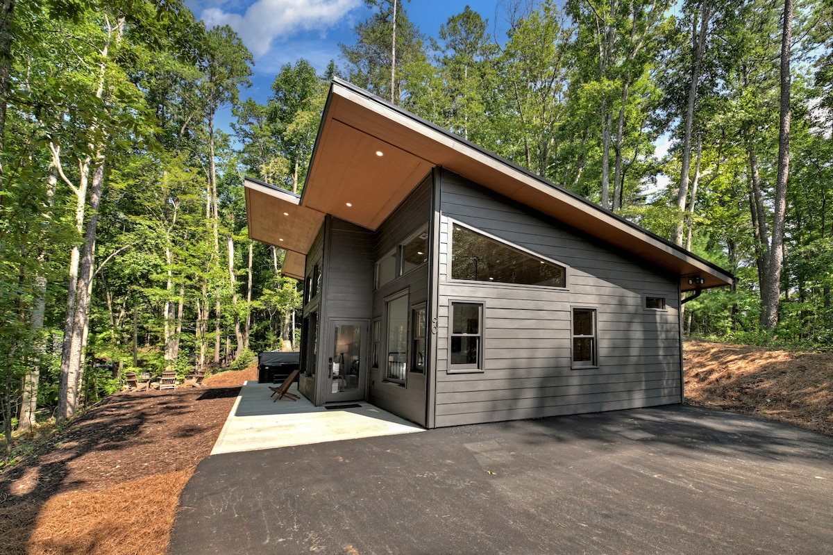 Relax in this peaceful and private modern space. A quick drive from the city and you've arrived at this escape from the hustle and bustle. Yet when the mood strikes for great restaurants, trendy bars/breweries, and unique small-town shopping you're only minutes away from downtown Blue Ridge. In this completely updated cabin you'll experience total privacy in the indoor hot tub, gorgeous screened in porch with swing bed and tv, huge walk-in shower, serene firepit, new grill & firepit table.