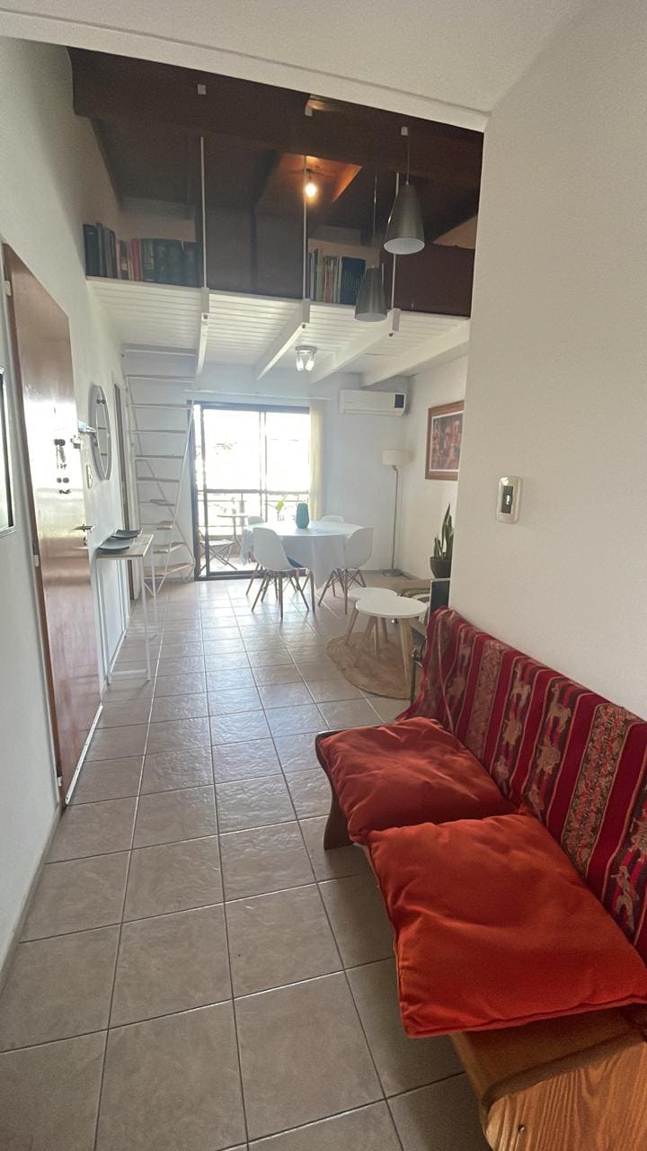 The apartment is very comfortable, bright and well ventilated. It has a large room on the ground floor and a mezzanine with a double mattress. It is located on the third floor by stairs. Strategic location 100 meters from Avenida 19 with its gastronomic pole (cafes, bars, breweries, pizzerias, restaurants) and 200 meters from Plaza Malvinas. There are several shops nearby. The Cathedral and the city's Central Square are 600 meters away and can be visited on foot.