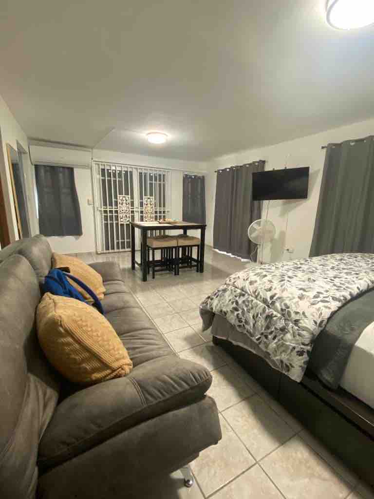 Located in Santa Elvira, Caguas, PR, this retreat offers the perfect balance of relaxation and convenience. Just minutes away from local shops, dining options, and UAGM. The bedroom has air conditioning, and the living room includes a sofa bed for two additional guests. Whether you're here to unwind, explore, or work remotely, our space is designed to make you feel right at home. Book your stay and experience the best of Caguas