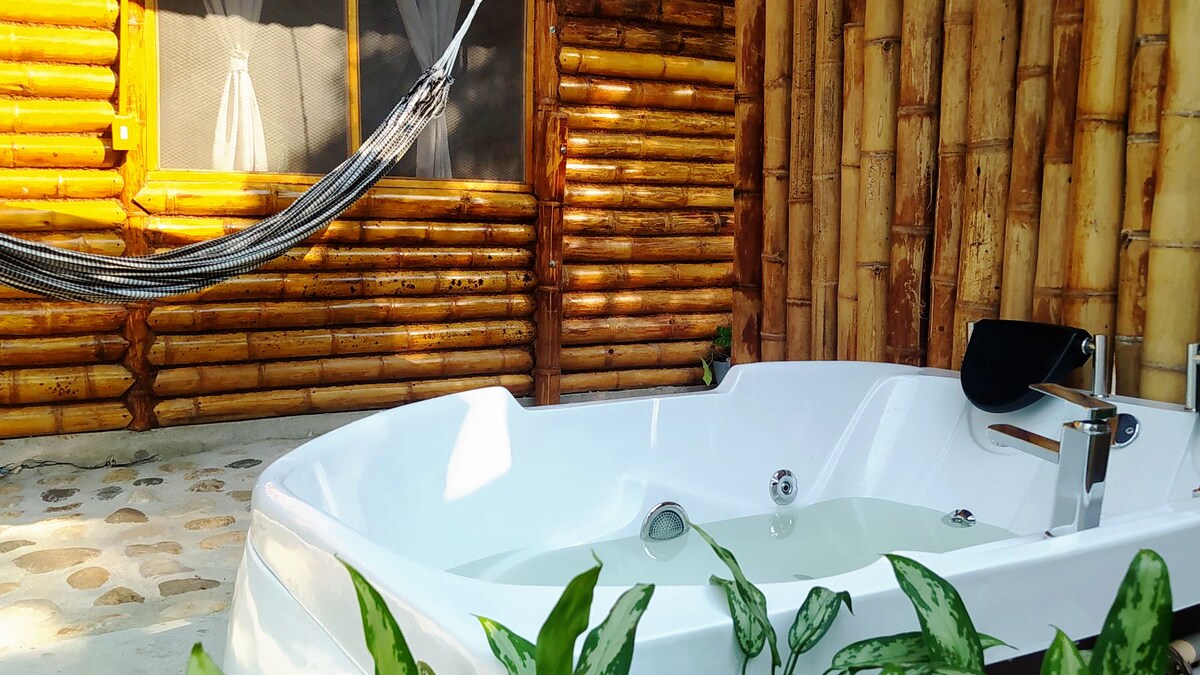 MONTE ADENTRO is a paradise built mainly of guadua and is located 15 minutes from the port, on the dam. A large space that respects the mountain where it is built and every detail is a sample of this. It features wooden stairs and planks, handmade lamps, stone sinks, and earthenware. Spacious rooms with private bathroom, Jacuzzis, hammocks, pool table and places to exercise will make your stay an unforgettable experience.