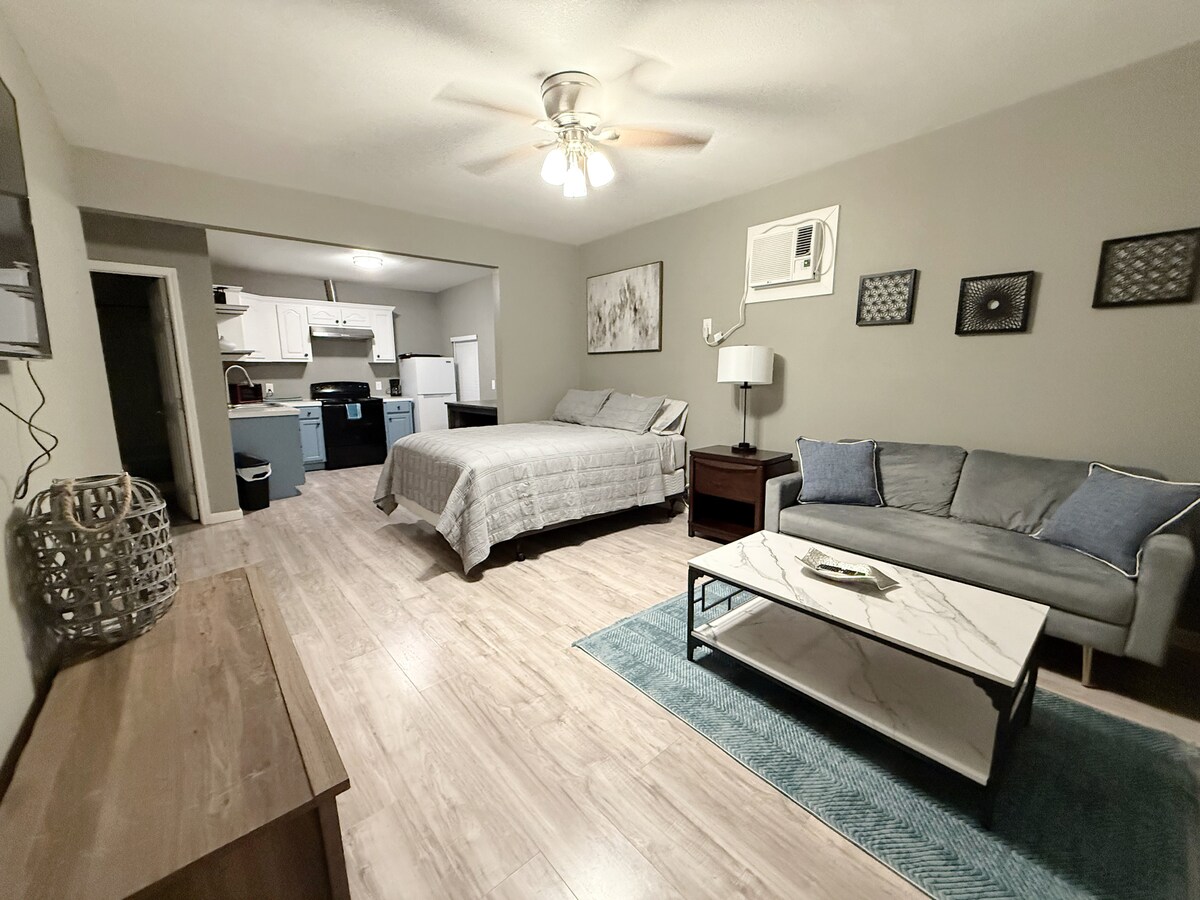 Baja Bungalow has everything you need and more! This stylish space features a spacious, inviting living room and a zen, spa-like bedroom for ultimate relaxation. The full kitchen is equipped with everything for morning coffee or evening cooking. Sleep soundly on a luxurious mattress with premium linens. Lounge on the velvet couch or chair while enjoying the 50” Roku smart TV. Pack light—we’ve got all the bathroom amenities you need, including handmade soap, for a perfectly comfortable stay!