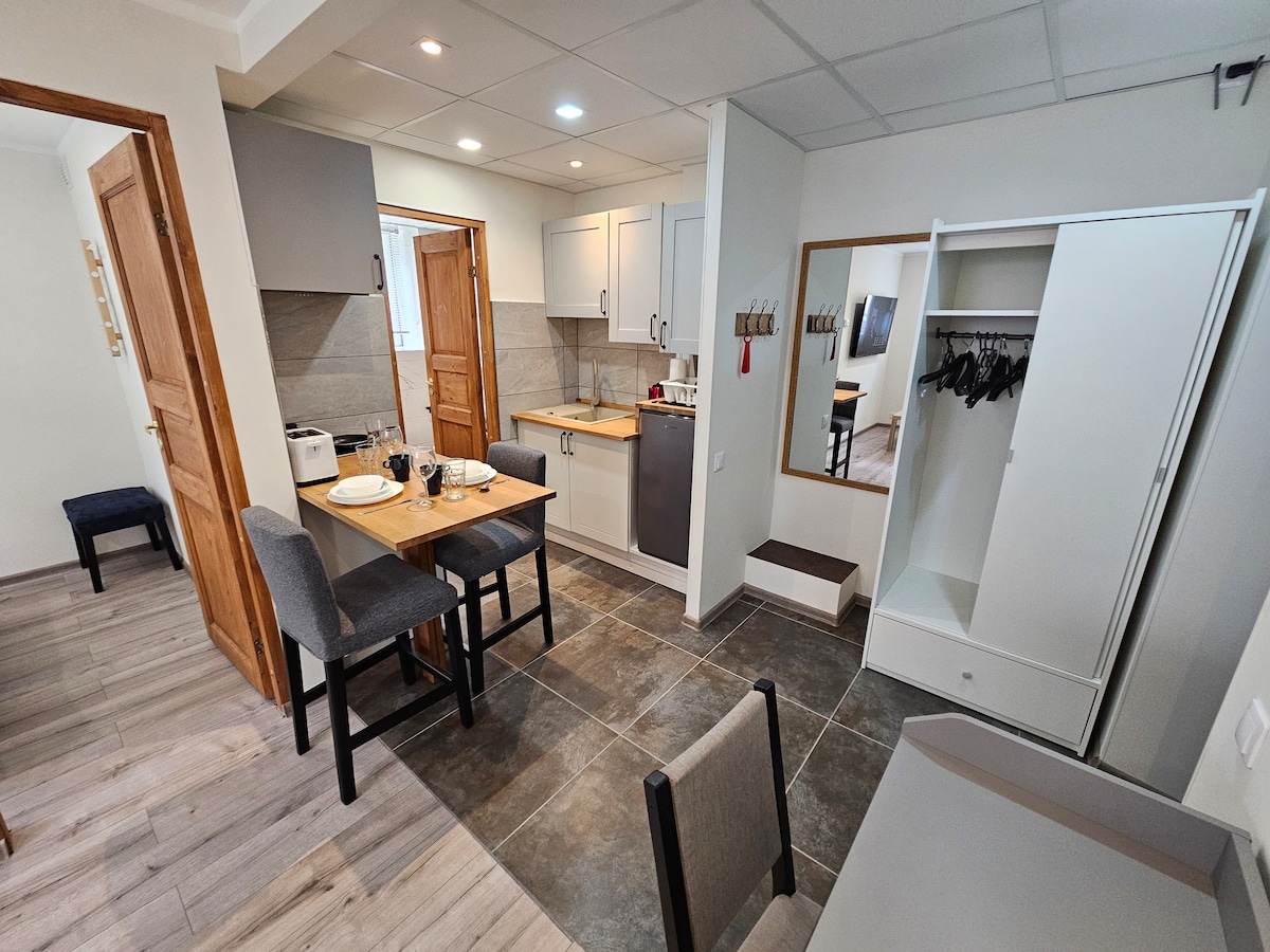 This special place is situated right in the heart of the old town, very close to everything - historical sights and museums, restaurants, and bars, making it easy to plan your visit, as you can get around on foot. The apartment has its own cute private entrance in a charming courtyard and is super cozy. It's on two floors - a fully equipped kitchen on one, and a bedroom and a brand new bathroom on the other. This tiny home is full of clever storage solutions, making it a very unique apartment.