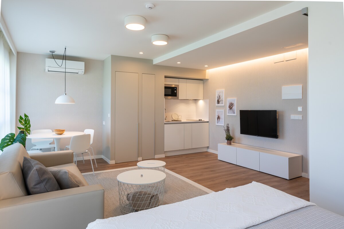 In the heart of downtown Burgos. A quiet and peaceful area. It has a living room with TWO BALCONIES and a double sofa bed, a bedroom WITH A DRESSING ROOM and a fully equipped AMERICAN KITCHEN. Newly renovated, it has all kinds of details and finishes. It is a two-minute walk from the Cathedral of Burgos, the main square, the Church of San Nicolás or the Paseo del Espolón. Located on the street of the Camino de Santiago. Acoustically and thermally insulated interior.