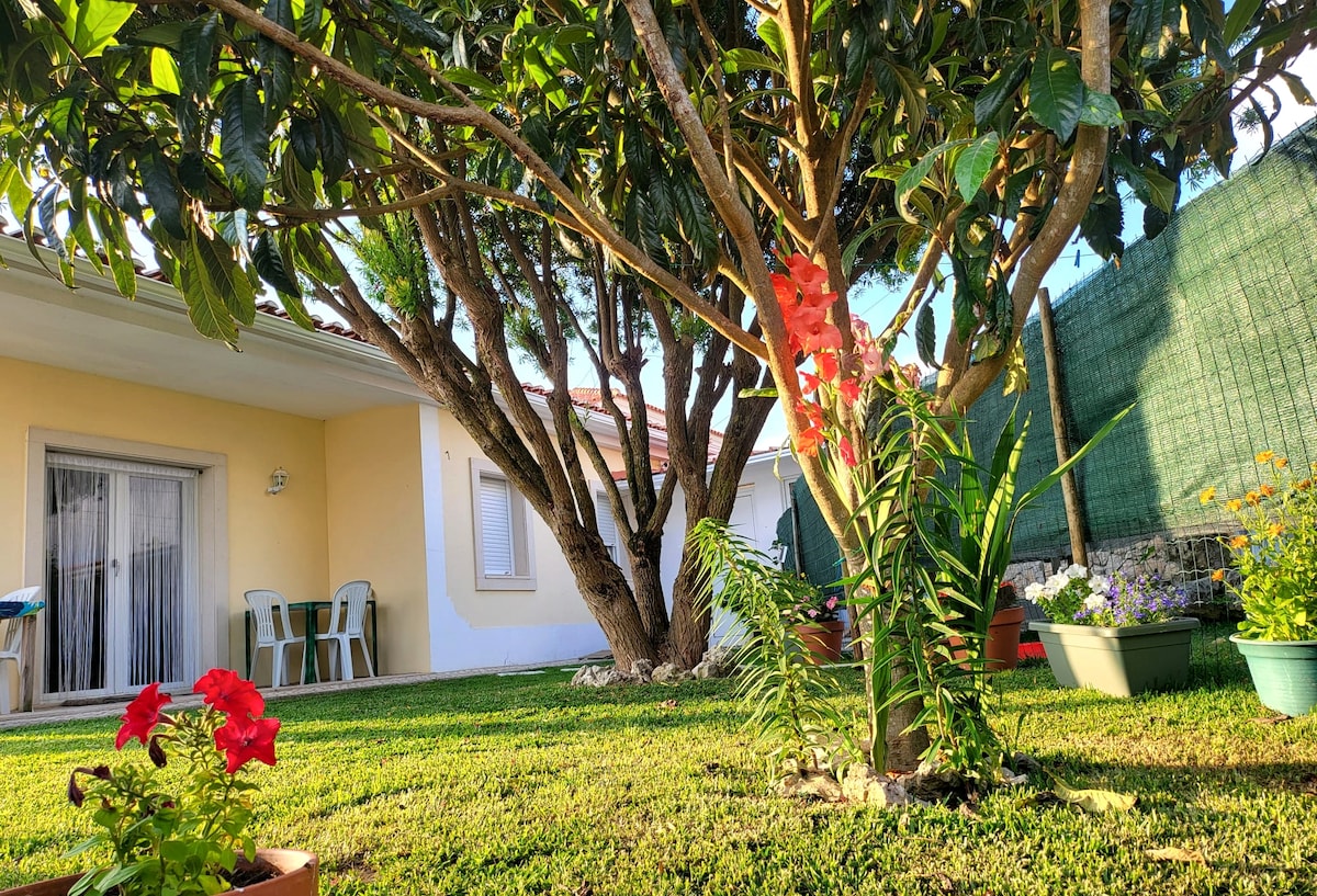 This beautiful and cozy house is just 5 minutes away from the beach of Foz do Arelho and the Obidos lagoon. You will live the whole country and beach experience,also 10 min away to the city of Caldas da Rainha and the medieval town of Obidos It is really cute and it has a great temperature, it has a garage space and a beautiful terrace where you can enjoy your days. It has an enormous garden with lots of trees and flowers and you will only hear the sound of birds. There is just nature around.