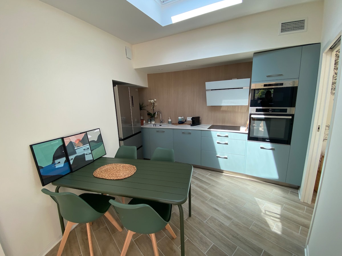 Un très beau logement neuf climatisé dans un esprit cocooning, situé au calme secteur résidentiel sur une jolie propriété. Un T2 lumineux , cuisine et salon ,une chambre et une salle d’eau séparée . Logement indépendant avec un extérieur (terrasse et côté jardin), prêt à vous accueillir. Situé à Torreilles village , à 5 minutes de toutes commodités tant pour le centre du village que pour les extérieurs commerces et 5 kms de la plage et à 10 km Perpignan Piste cyclable du logement à la mer