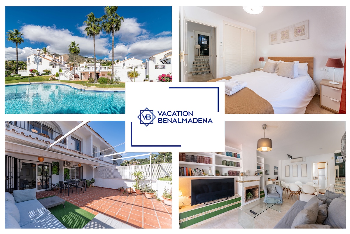 Moderne og stilfuldt rækkehus med havudsigt, jacuzzi i naturskønne omgivelser. Oplev roen og den betagende udsigt over Middelhavet og Fuengirolas kystlinje. Nyd solen hele dagen fra den store gårdhave med spiseplads, lounge og legeområde til børn, balkoner ved stuen eller soveværelset, samt den eksklusive tagterrasse. Kompleks byder på pool, liggestole og parasoller. Perfekt beliggende nær en af kystens bedste strande, Carvajal, Fuengirola by og det luksuriøse Higueron Resort og Sports Club.
