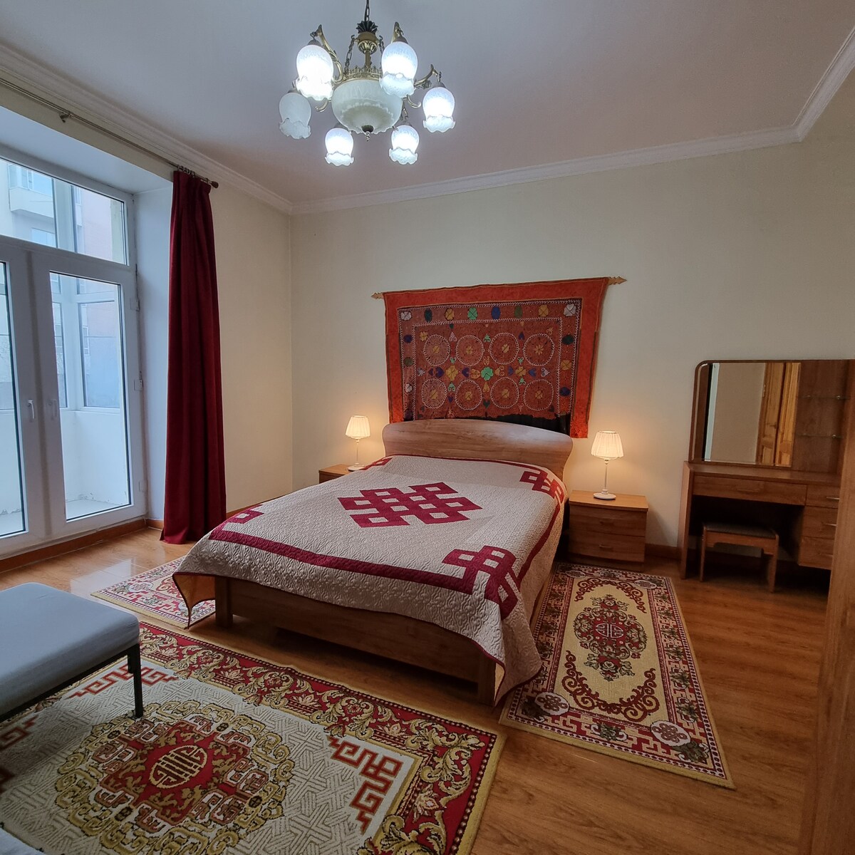 This apartment is fully furnished and finished to a tasteful, practical high standard. The accommodation consists spacious master bedroom with a king-size bed, a second bedroom with a queen-size bed, and a third bedroom with twin beds. A fully-fitted and equipped kitchen and a big comfortable sitting room. Wooden floors are complemented by hand-made wooden doors, double-glazed windows, comfortable Mongolian rugs, wooden furniture and some soft furnishings.