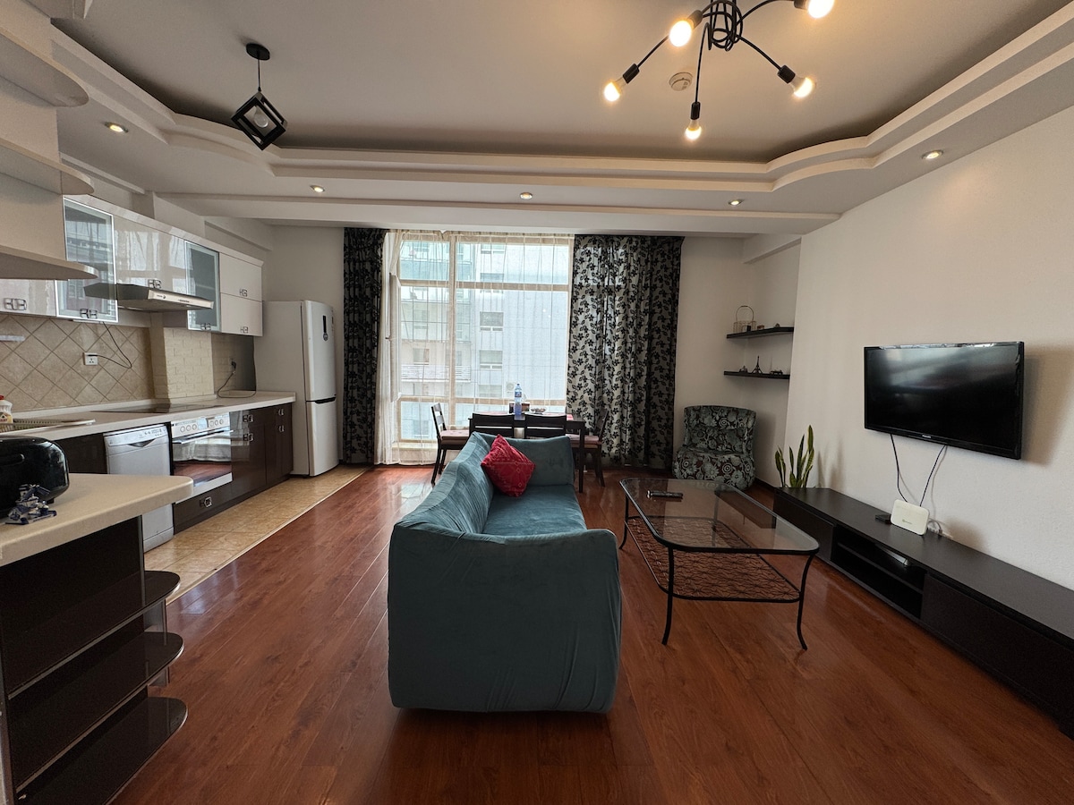 Brand new, spacious 100 m² 2BR apartment just minutes from the city center. Located in a secure building with 24/7 security, free outside parking and a children’s playground.  Apartment features: - Two king size bedrooms - Capacity: Up to 6 guests (any additional guests will be subjected to 20$ per person) - Fully equipped kitchen - Free outside parking - High speed WI-FI - 24/7 buildng security - Prime location near city center - Airport pick up - 40$