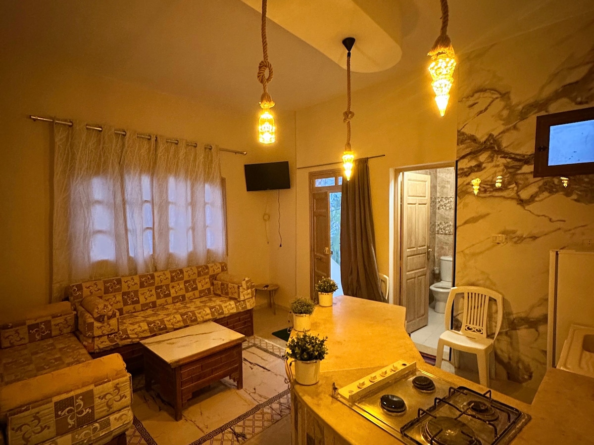 🥐 Complimentary breakfast buffet every morning between 8 am and 10 am. Enjoy a unique experience in our small studio with stunning views of the Tozeur Desert from its private terrace. This studio includes a comfortable living room, a fully equipped kitchenette, a bathroom with shower and a cosy bedroom. Great for a romantic getaway or solo adventure. Book now for an unforgettable experience by the Tozeur Desert! Shared terrace.