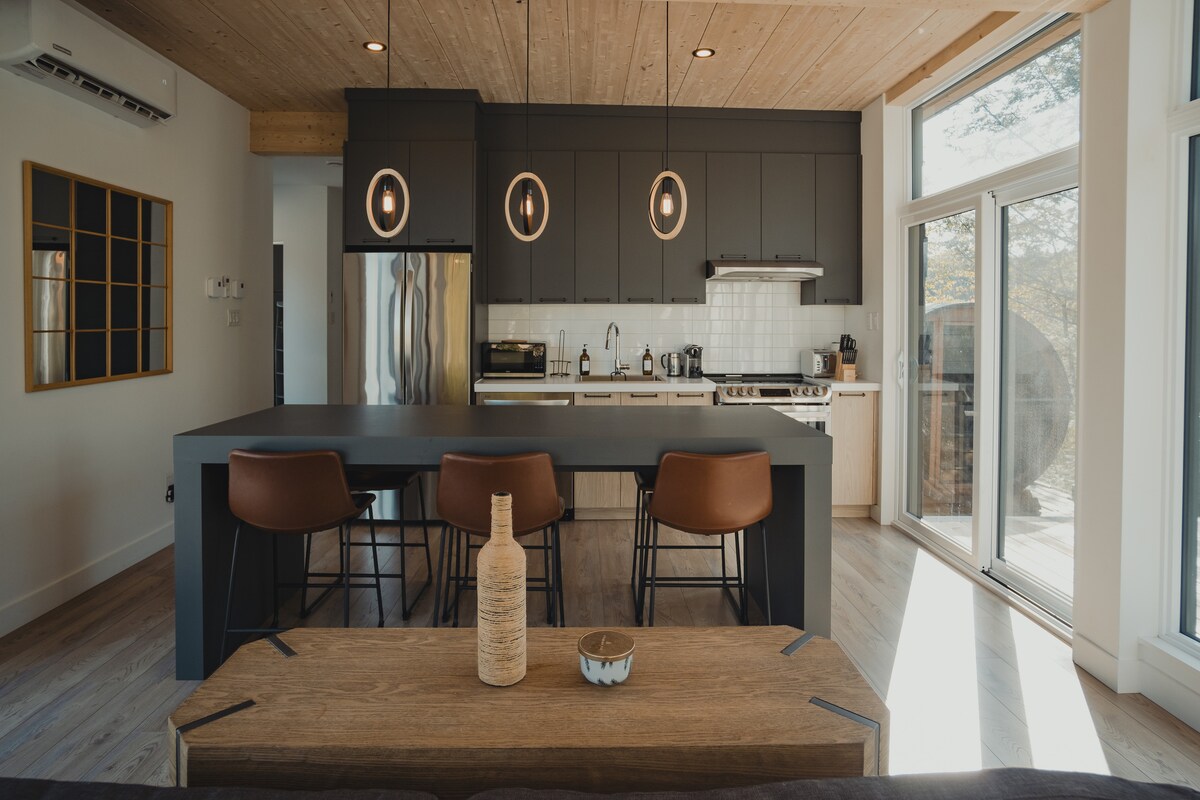 Take advantage of the soothing effect of nature by staying in this contemporary chalet with lots of windows in the heart of the forest. Tremblant is beautiful no matter the season. Dream outdoor destination, you will be 8 minutes from Mont-Blanc and 20 minutes from Mont Tremblant. Whether for hiking, cross-country skiing, snowshoeing or snowmobiling, trails are easily accessible in all directions. Without forgetting the famous P'tit Train du Nord 3 minutes away.