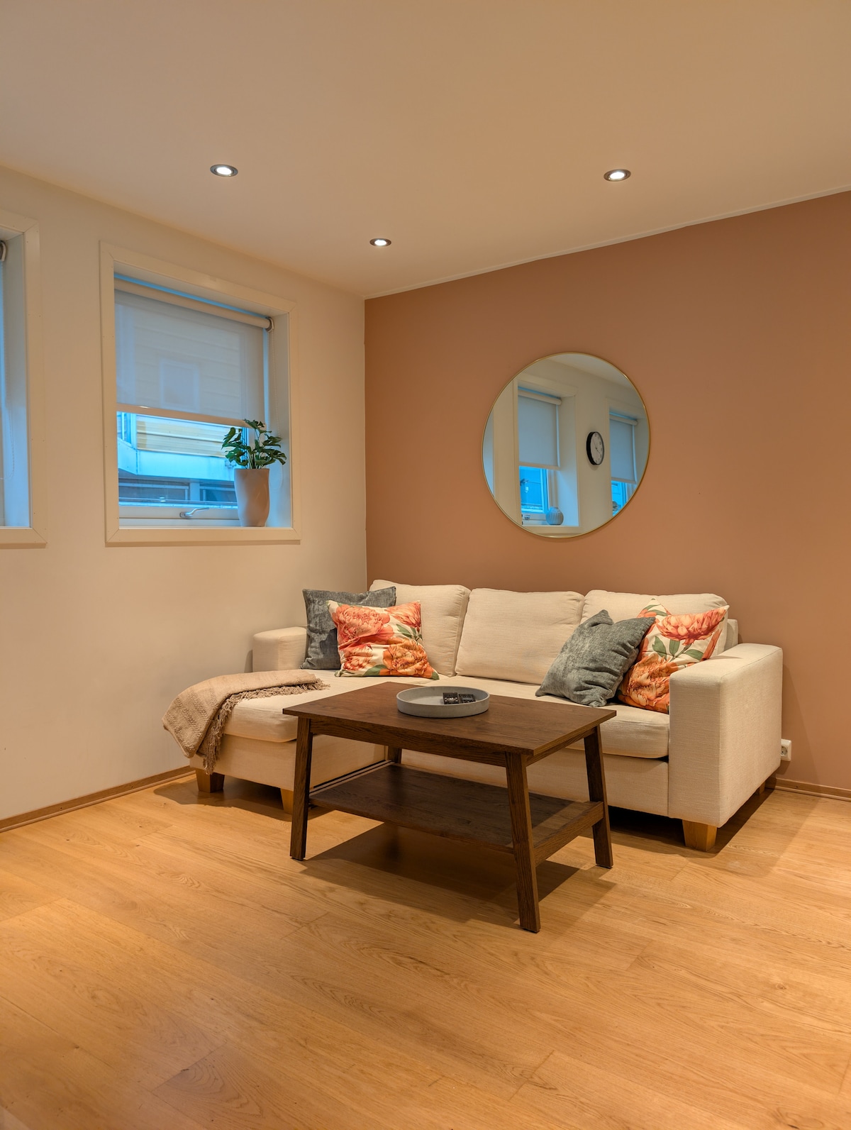 Warm welcome to a unique and pleasant experience in a centrally located apartment with the sea as your closest neighbor. The apartment is decorated in Scandinavian style and is a comfortable and relaxing place with easy access to everything Tromsø has to offer. Why stay in a small hotel room when you can stay here with more facilities? For video of the apartment, search for "Captains Crib" on Vimeo. Possible to store skies in separate storage unit.
