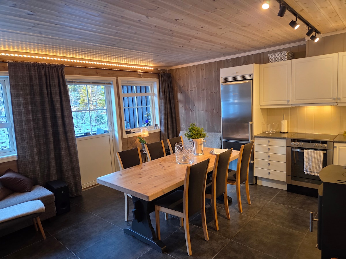 Moderne tømmerhytte med plass til 18 personer/7 soverom. Ny høsten 2018. Stue, kjellerstue og suite med TV’er. Oppvaskmaskin, mikrobølgeovn, komfyr, platetopp. To kjøleskap på 300 l + 140 l, et fryseskap på 90 l. Vaskemaskin, tørkeskap, skotørkere. Utvendig spyleslange for vask av sykler. Utemøbler: 2 sittebenker m bord. Lademulighet for elbil, 11 kw. WiFi er installert. Sluttrengjøring er inkludert. Sengetøy og håndklær kan bestilles mot tillegg i prisen. Røyking og husdyr er ikke tillatt.