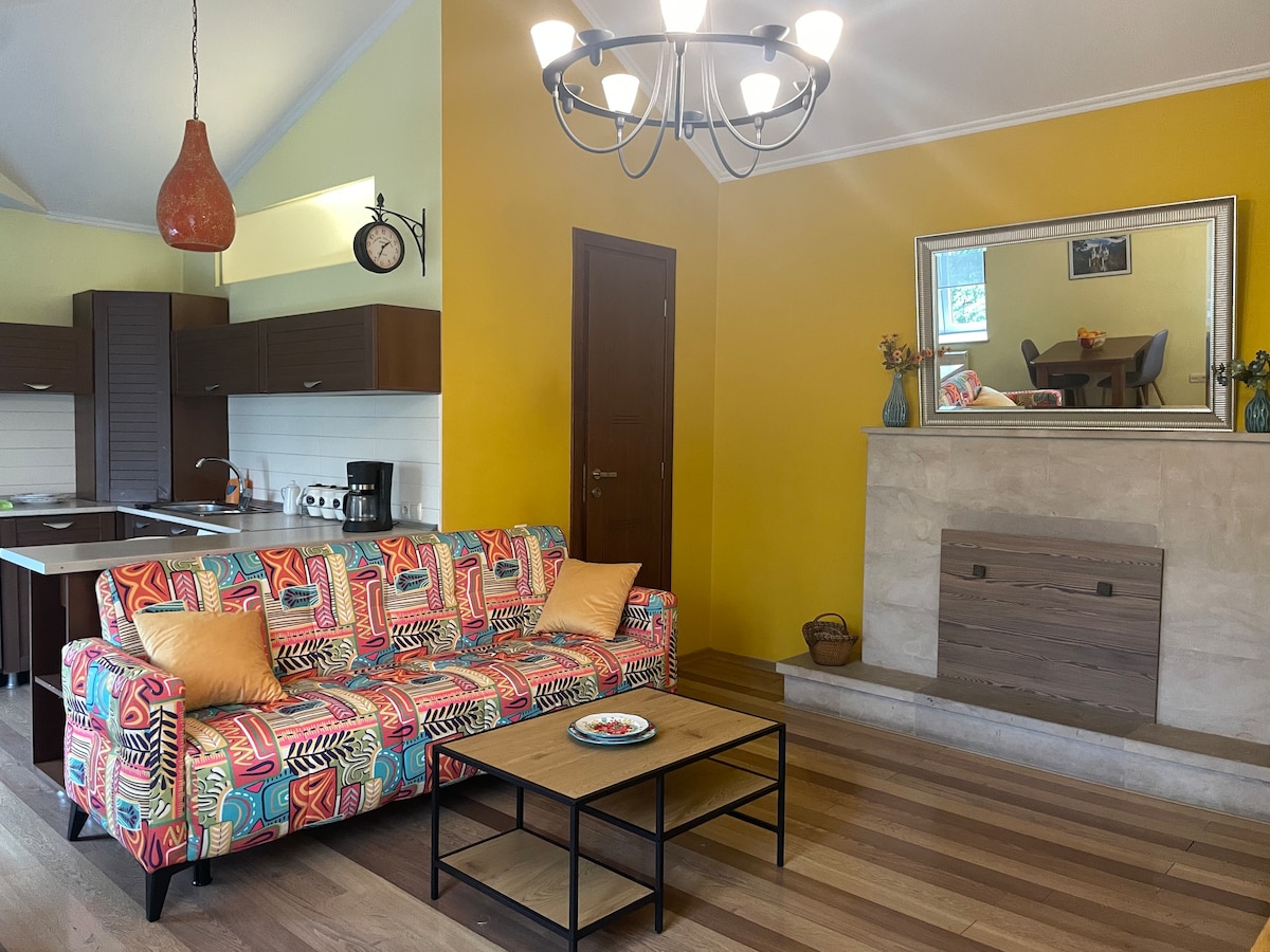 Beautiful house, close to the sea, just 250 meters away! On a small hill, with a wonderful sea view and a constant fresh sea breeze. You have the entire second floor with a separate entrance, three bedrooms, a huge hall, a kitchen, a bathroom and a balcony. Each bedroom has a panoramic sea view. All bedrooms have two comfortable beds, with the possibility of adding one more bed. + in the hall, the corner unfolds and turns into a bed for two! and a flat-screen smart TV.