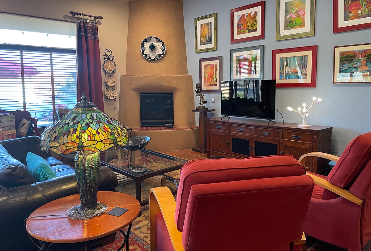 Casa Azul – Your Southwestern Getaway. Come and relax in this charming retreat that features mesquite furnishings, colorful Talavera tile, and cozy indoor/outdoor spaces. • 3 bedrooms, 2 bathrooms, fully equipped kitchen • Pool, hot tub, gym, and walking trails in the community • Outdoor grill & patios upstairs and down • Minutes from restaurants and galleries and an easy drive to Tucson or to Mexico. Your perfect mix of comfort and character awaits at Casa Azul.