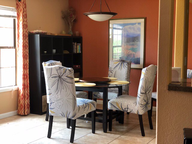 Our Rancho Vistoso patio overlooks a greenbelt which has become a wildlife refuge. The patio offers dining and lounging, with the Amazing Mountain and Desert Sunset views. The Vistoso Casitas resort-like amenities include six miles of paved paths, a heated community pool/spa, Ramada with BBQ grills, exercise facility and clubhouse. We have spent hours biking throughout Oro Valley’s many miles of safe and scenic biking routes and hiking challenging mountain trails at nearby Catalina State Park.