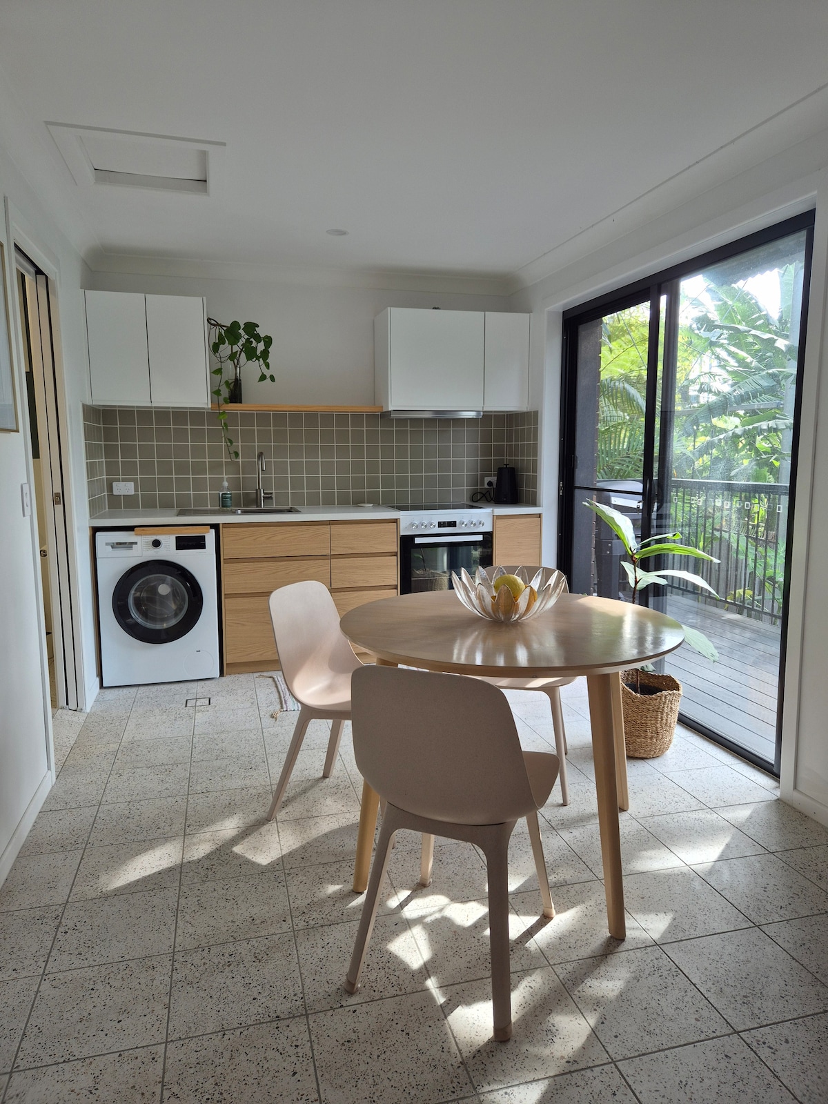 Perfect location for short getaway or accommodation while attending an event. Small private guest suite with private entrance on the ground floor of a Villa only 100m from beautiful Tugun Beach. This new modern Guest Suite is a small queen size bedroom with kitchenette and bathroom opening out to leafy courtyard. Close to beach and pathway from Currumbin to Coolangatta. Perfect for walks or ride. Only 4kms to Airport. Close to Tugun Village food market, shops, coffee, restaurants and Surf Clubs