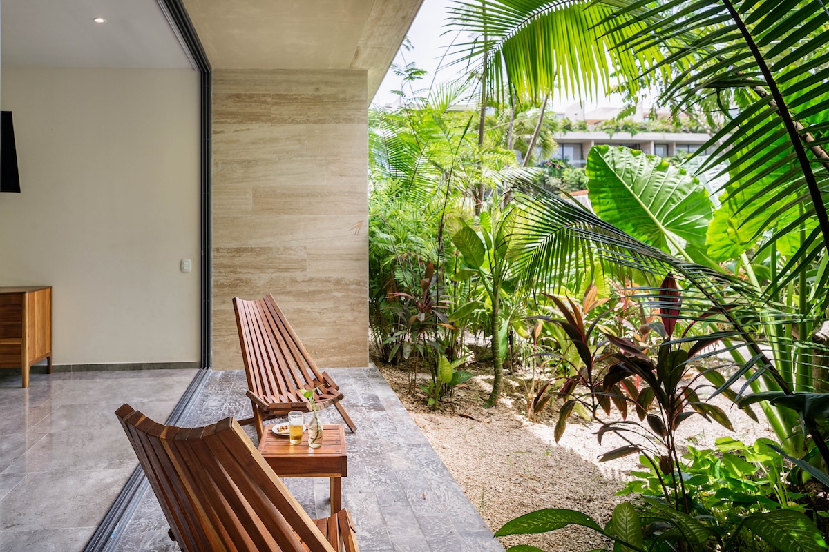 Escape to your private oasis with a furnished patio overlooking a tropical Garden, relax by the hammock, or take a dip in the complex private Cenote This home offers a magical vacation experience for up to 4 people. Book now for your dream getaway Our building has positioned among the top 3 developments to stay for short and mid-stay renters. It has a 3-level building dedicated to amenities like Pool Games, a Co-working area, Spa, Gym, Jacuzzis, Hamam(subject to availability), and a Rooftop