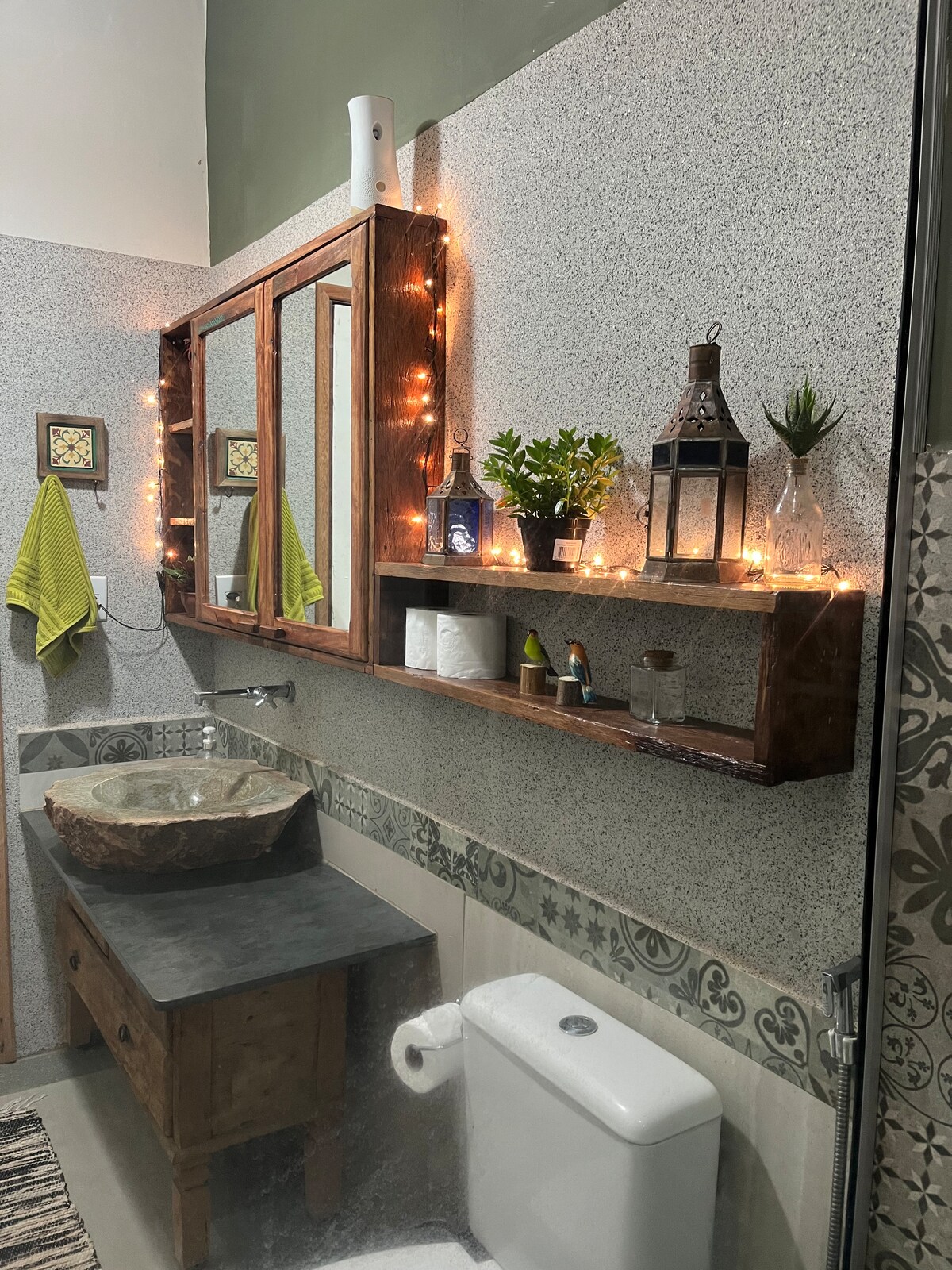 A place of peace and warmth, full of charm, very wooded, privacy, a Spa for 6 people, which heats up to 36 degrees, great for relaxing nights and hot days. Indoor kitchen and spacious living room with air conditioning, the bedrooms are large, one of them with a bathroom and another internal bathroom serving the other two bedrooms, the bedrooms have air conditioning and new beds. The balcony is spacious, outdoor kitchen with barbecue and brewery. Washing machine in the laundry room.