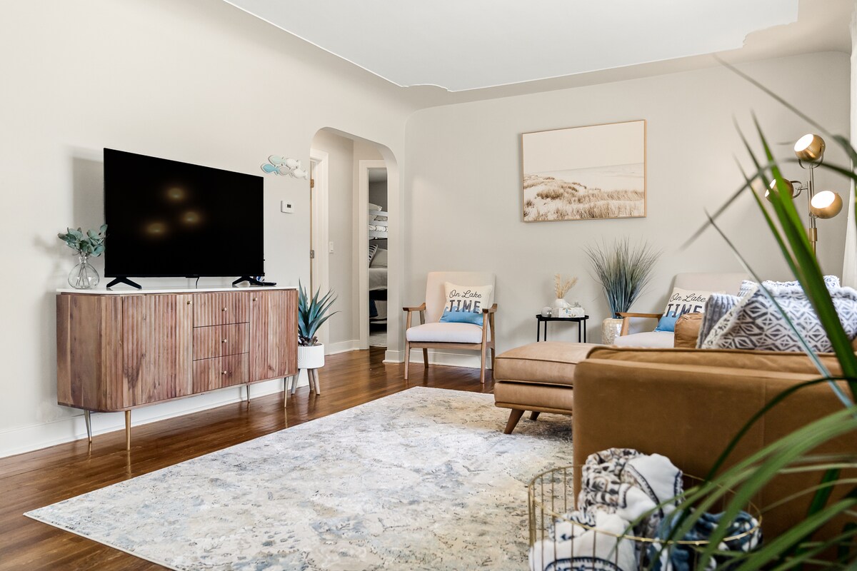 Your family will be close to everything when you stay at this centrally-located home. 15 min drive to Michigan's Adventure 13 min drive to Hoffmaster State Park 12 min drive to Pere Marquette 6 min drive to Heritage Landing 4 min bike ride to Laketon Trail 3 min bike ride to Rykes Bakery 1 min drive to Scribs Pizza The Watch Us Go Bungalow is beautifully decorated & conveniently located near Muskegon's finest attractions. Your options for rest, play, and entertainment are endless.