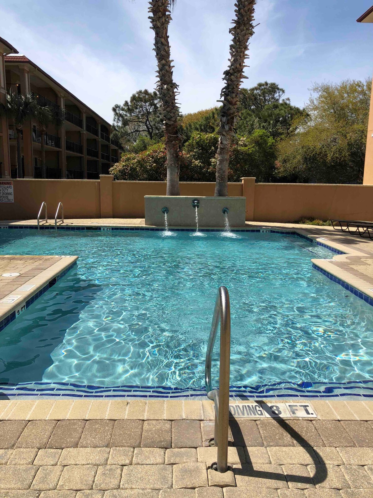 Brass Rail Villa 121 is a Mediterranean style luxury condominium. It is spacious with three bedrooms and two and a half baths and a large private balcony with a grill that overlooks one of the pools. Granite countertops, stainless steel appliances, custom cabinetry... There are two outdoor pools and a jacuzzi. This condo is steps away from the beach, pier, shops, restaurants, night life.....