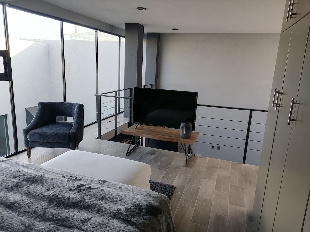 Enjoy a stylish experience at this centrally-located place. The English Loft is 7 minutes from El Centro of Morelia.This all-new modern loft can host up to 3 people. It includes 1 queen bed and a sofa bed. It also includes air conditioning, cable TV, and free internet. The English Loft provides a great space for relaxing while planning your stay in Morelia for work or play. It is located in a safe Colonial with host access for any additional assistance.Reserved Street Parking or free pension.