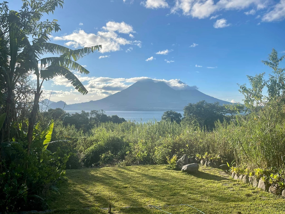 Enjoy breathtaking panoramic views of Lake Atitlán, its surrounding volcanoes, and mountains from your artisanally designed sanctuary. Wake up to epic sunrises and birdwatching while lounging on the sofa or a queen orthopedic mattress. The house features a chef-designed kitchen, handcrafted decor, WiFi, 1.5 baths, a hot shower, and easy access to hiking and yoga. A 7-minute walk or short tuk-tuk ride from central San Marcos. Ideal for couples, creatives, digital nomads, and nature lovers.
