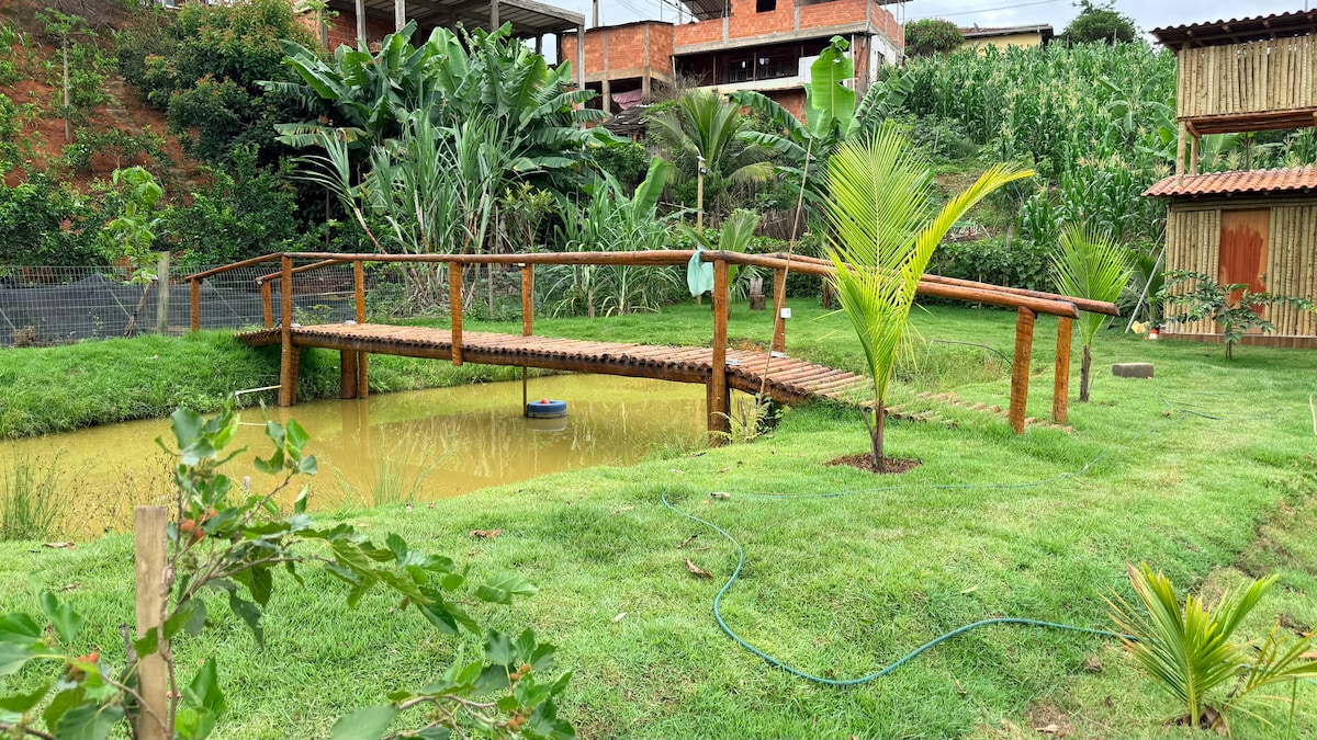 Our space is beautiful, you will be enchanted, a perfect place to enjoy with family and friends and take amazing photos. A simple and cozy house, beautiful lagoon to admire and fish... lots of flowers, trees, orchard with fruits, organic garden with vegetables and spices, it is a place of great peace to enjoy nature. We are a few kilometers from the Bom Será waterfall and the Feliciano Miguel Abdala reserve. Come and discover our paradise. easy access.