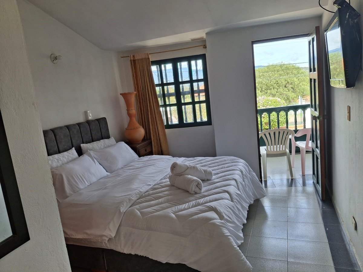 Escape to our cozy guest house in Villa de Leyva, surrounded by nature, olive trees, and a picturesque pond. Located a few minutes from downtown, this private property offers a quiet and serene atmosphere. With spacious and comfortable areas, it's the ideal place to relax and enjoy the peace of the environment. Enjoy total privacy and a unique experience in a place full of charm and natural beauty. We look forward to making your stay unforgettable!