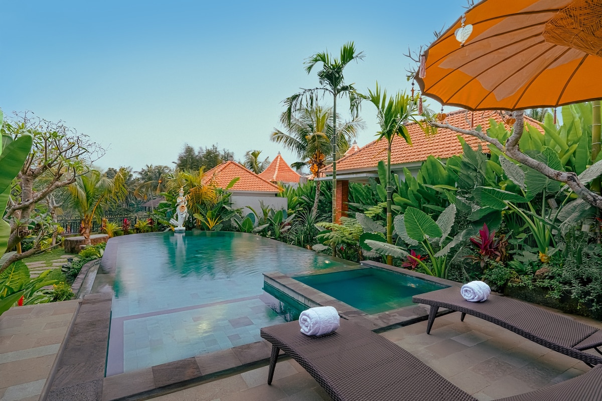 Located in Ubud city centre, only 5 minutes walking to Ubud main street. Provides accommodation like swimming pool, luxury bathroom, free Wifi (very fast) and 24/7 front desk. Our superiour suite can have a balcony or a direct pool view. If you have a preference feel free to let us know and we will lock in your preference. For your stay breakfast is included! The rooms are provided with Air-conditioning, electric tea pot, a flat-screen TV a private luxury bathroom.