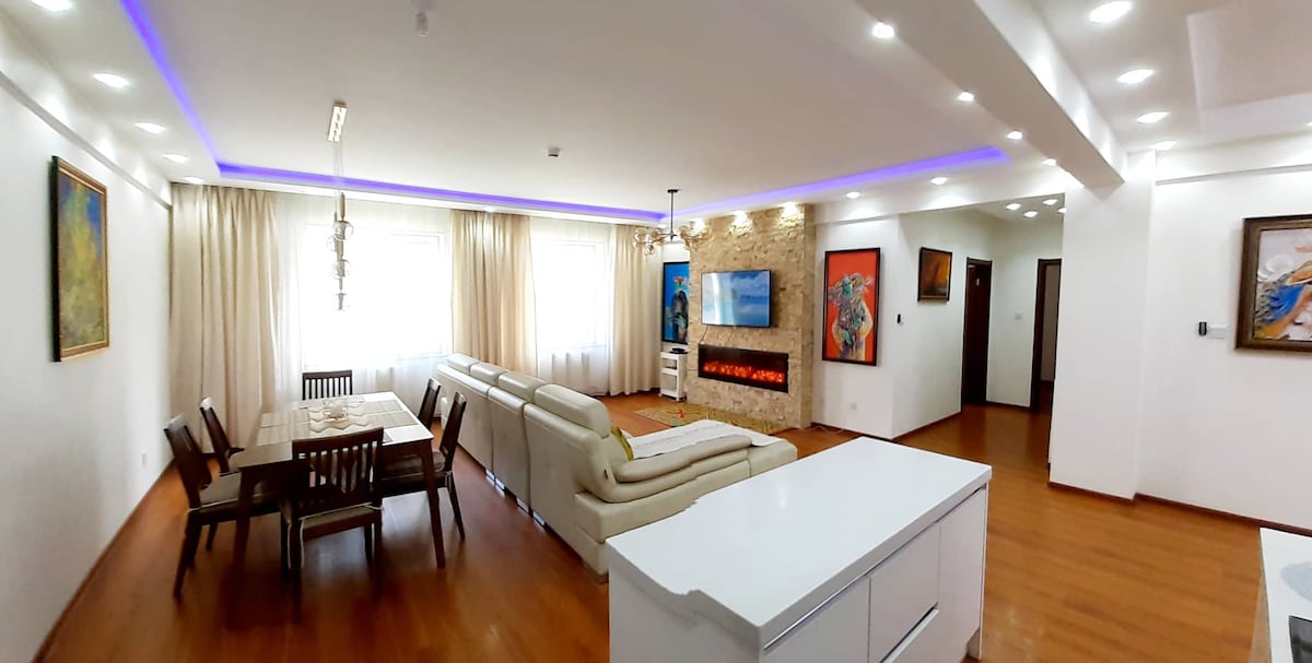 Welcome to Seoul Royal County, a spacious luxury stay in Ulaanbaatar perfect for up to 6 guests. Enjoy a bright open living area with plush seating, a cozy fireplace, and a large TV for relaxing nights in. The home features a fully equipped kitchen and a spa-style bathroom with a freestanding soaking tub and glass shower. Free parking adds extra convenience. Ideal for families, friends, or business travelers seeking comfort, style, and space.