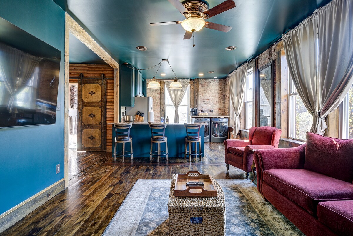 Welcome to our two bedroom and one bath loft located in downtown Erwin, TN. With beautifully restored original hardwood floors, the fully remodeled interior boasts a fresh and stylish design, ensuring a comfortable and enjoyable stay. Situated above Hunter Bleu Boutique, you'll have the convenience of our downtown amenities right at your fingertips. Whether you're in the mood for a delicious lunch, a cup of coffee, or some retail therapy, everything you need is just a few steps away.