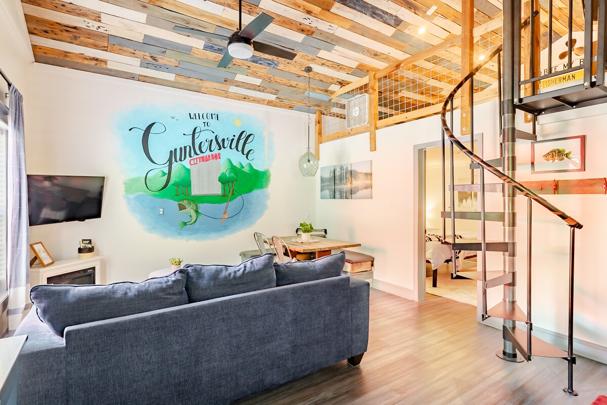 Lake Guntersville Tiny Home King Bed + Fireplace