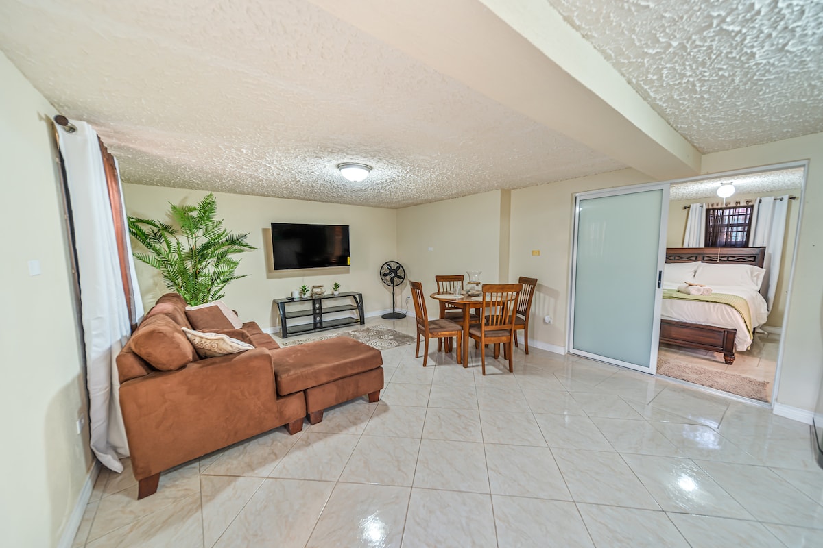 This modern studio apartment is located in a safe and friendly neighbourhood which is suited only 5 minutes away from the Grantley Adams International Airport and a quick drive away from many beaches on the south coast of Barbados.