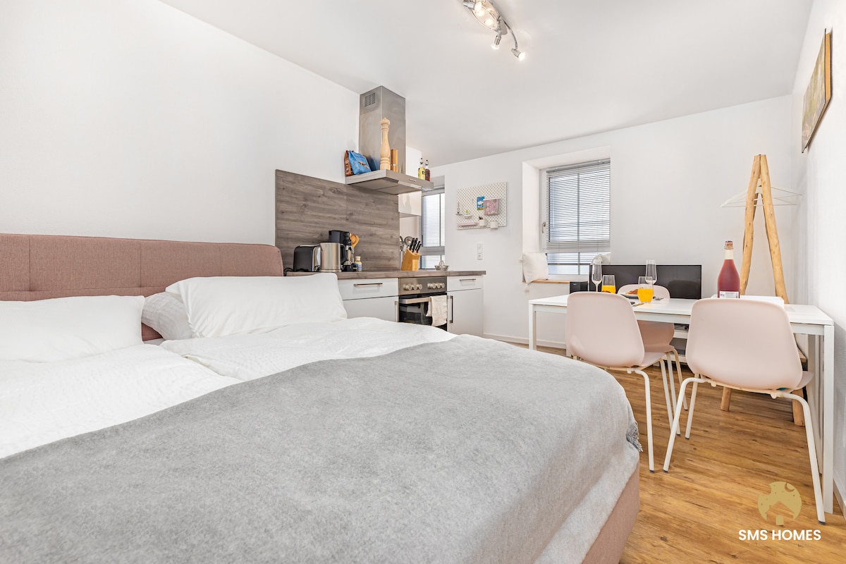 Welcome to KC Hostings! Our spacious deluxe apartment with 3 rooms in a central location in Reutlingen offers a modern, tasteful temporary home - ideal for families, business travelers or groups of friends. Two separate bedrooms, a bright living/dining area and a fully equipped kitchen provide flexibility and comfort - for up to 4 people. A modern bathroom with walk-in shower and a separate toilet ensure a functional room layout, especially for several guests. The quiet but central location clo