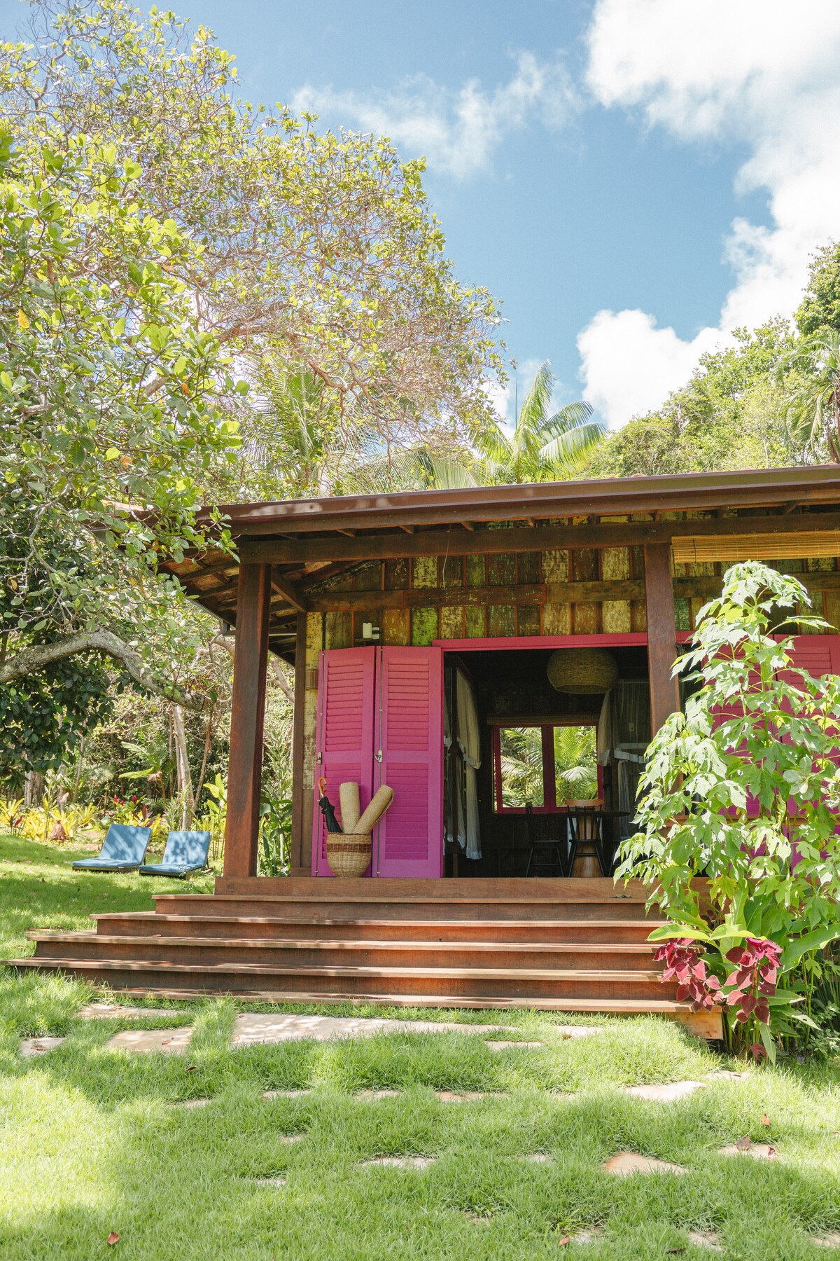Charming and cozy suite bungalow in Serra Grande with breakfast included. In addition to the bungalow, we offer an outdoor collective kitchen, which is close to the lodging, so you can make your lunch or dinner. Sítio Labareda is immersed in nature, 7 km from wonderful beaches and 5 km from the village where there are restaurants, markets and pharmacies. 1 hour from Ilhéus Airport and 30 minutes from Itacaré. A reserved and very special place.