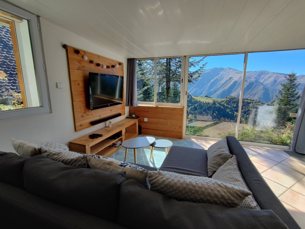 The cottage we are offering is renovated with eco-friendly materials. It has exceptional views of the mountains! All electric comforts, WIFI, fireplace, Plancha, Ideal for GR10 hiking departures, lakes, waterfalls, ski resort, mountain biking, equestrian center, kayaking, relaxation and wellness treatments on site. Nordic walking, by appointment according to availability, I will put you in touch with a state-certified guide. P.S. No towels