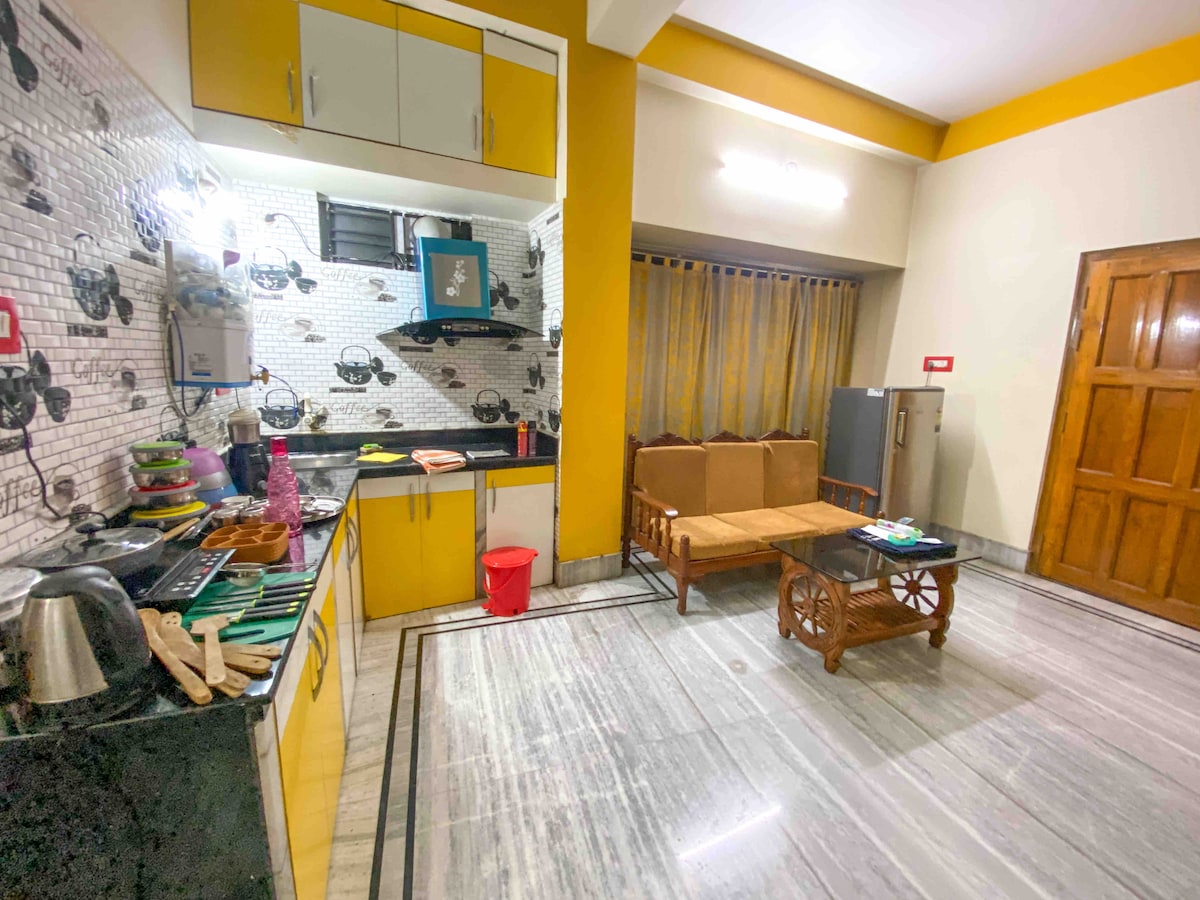 Note- Unmarried couples aren’t allowed. Forget your worries in this spacious and serene villa.You will notice a glimpse of Bengal at this place. It has a living room with a 6 seater sofa,center table,Bluetooth music player & washbasin passage. Big kitchen with gas oven,microwave,toaster,utensils, pressure cooker,fridge & dinning table with chairs. 1 washroom with geyser.2 bedrooms with two ACs, 2 doublebeds, wardrobes,2 side tables,a TV & a work corner with office chair & table.(High speed WiFi)