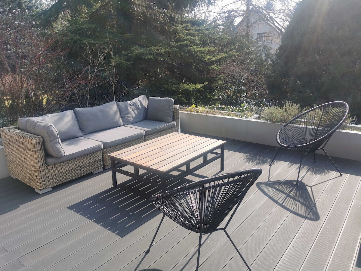 Nowe, świeże, przestronne mieszkanie idealne dla czwórki gości, na krótki jak i na dłuższy pobyt. W okolicy dużo zieleni. Blisko sklepy, piekarnie, restauracje, kawiarnia, fryzjer, słowem wszystko czego można potrzebować w zasięgu 5 minut spacerem. Lotnisko w zasięgu wzroku, szybki dojazd w 7 minut.