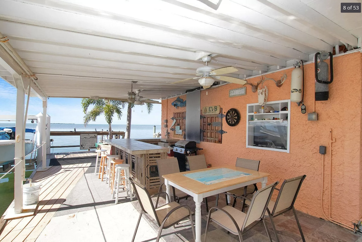Studio Two's waterfront rental is located on the ground level. Each unit comes with a boat slip and parking for your trailer. We can handle boats up to 25’. There is a boat ramp just 2 blocks away. We provide outside table and chairs, and just around the corner, the barbecue grill. Our accommodations include king bed, living and dining area, futon, polished terrazzo floors, waterfront patio, literally 6 feet from the water, full size and equipped kitchens, A/C and cable TV, DVD and Wi-Fi.