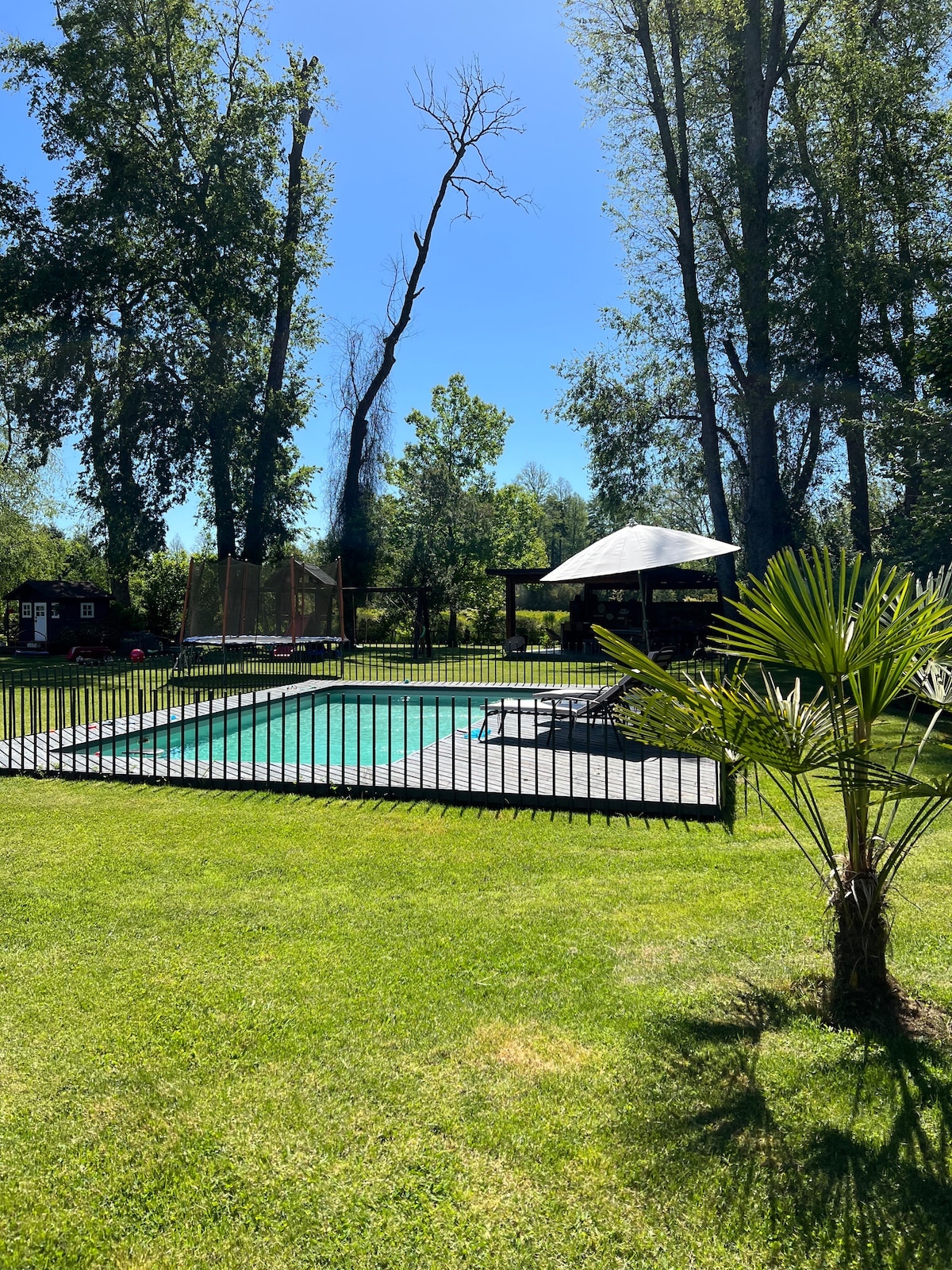 Forget your worries in this spacious and serene space Country house located 16 km from Villarrica, 13 km of asphalt and 3 km of gravel, it is 20 minutes from Lican Ray and 45 minutes from Panguipulli. It has a king size bed, two single beds and a sofa bed, and WiFi by Starlink. It also has a 7×3 meter pool. There are 60 hectares to enjoy with total privacy, where you can hear the birds singing and if you are lucky and walk through the forest you can see birds of prey and foxes.