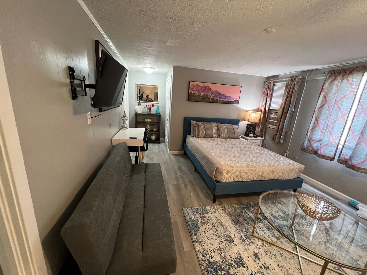 The April room is located within the beautifully restored Cranford building. The building has been a staple of downtown architecture since its construction in 1905. In 2013, the building underwent a massive preservation and revitalization, earning national recognition for its historic preservation. The room boasts all wood floors, new stainless steel appliances, granite counter tops, large windows with plantation shutters, and is walking distance to pretty much anything you will need downtown