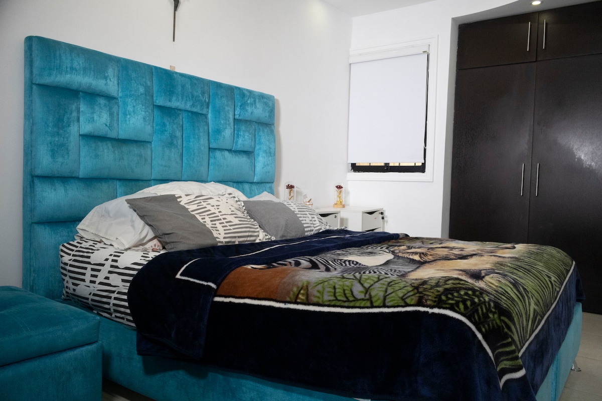 Just like at home. • 2H, 2B, living room, dining room-kitchen, patio, laundry room, covered garage. • 100 Mbps fiber optic WiFi • Double and bunk bed, A/C, closets, heater, linen, personal toiletries. • Kitchen, oven, refrigerator, appliances, utensils. Basic market (2 days). • 1360 channels, movies, series. • First aid kit. • Security cameras • Exclusive social club access (1 day). • Airport transportation ($10). • Pet Friendly. • Close to all kinds of commerce. • Host-attended. • NO SMOKING