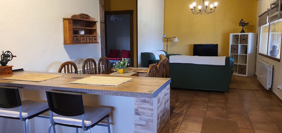 Rustic duplex on the outskirts of a village of 3 inhabitants (Los Loros). Sleeps 3 (double bed + single bed). Downstairs is the living room-kitchen and bathroom. The living room has a wood-burning fireplace, with a load of firewood included in the price. On the second floor is the bedroom with the two beds. Next to the house, we offer an open plot with a table and chairs next to the forest. Amazing nature trails near the house.