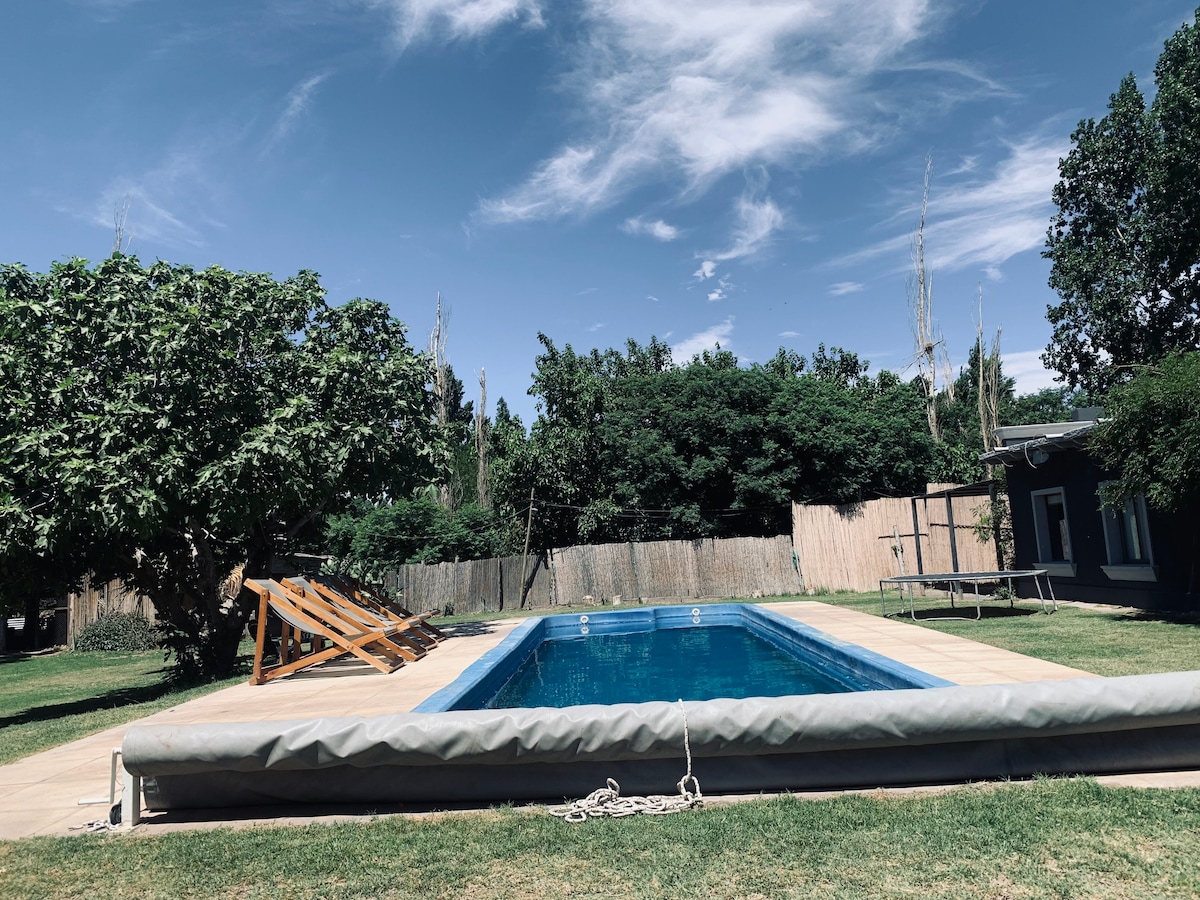 House with pool and parking just 15 minutes from downtown. Grill, Chilean and clay oven. Elastic bed and hanging fabric. near the Bicentennial stadium in Pocito, San Juan. Just 1 km away from Route 40, super accessible. Option of typical meals such as empanadas, fried sopaipillas/cake, prepizas and homemade pancakes. Babysitting option.