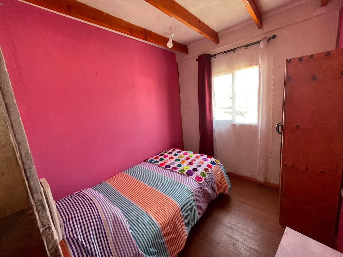 A room for one person with a shared bathroom, with the possibility of using common spaces in a quiet and comfortable atmosphere, located 100 meters from the main street of downtown Hanga Roa, steps away from shops and tourist places.