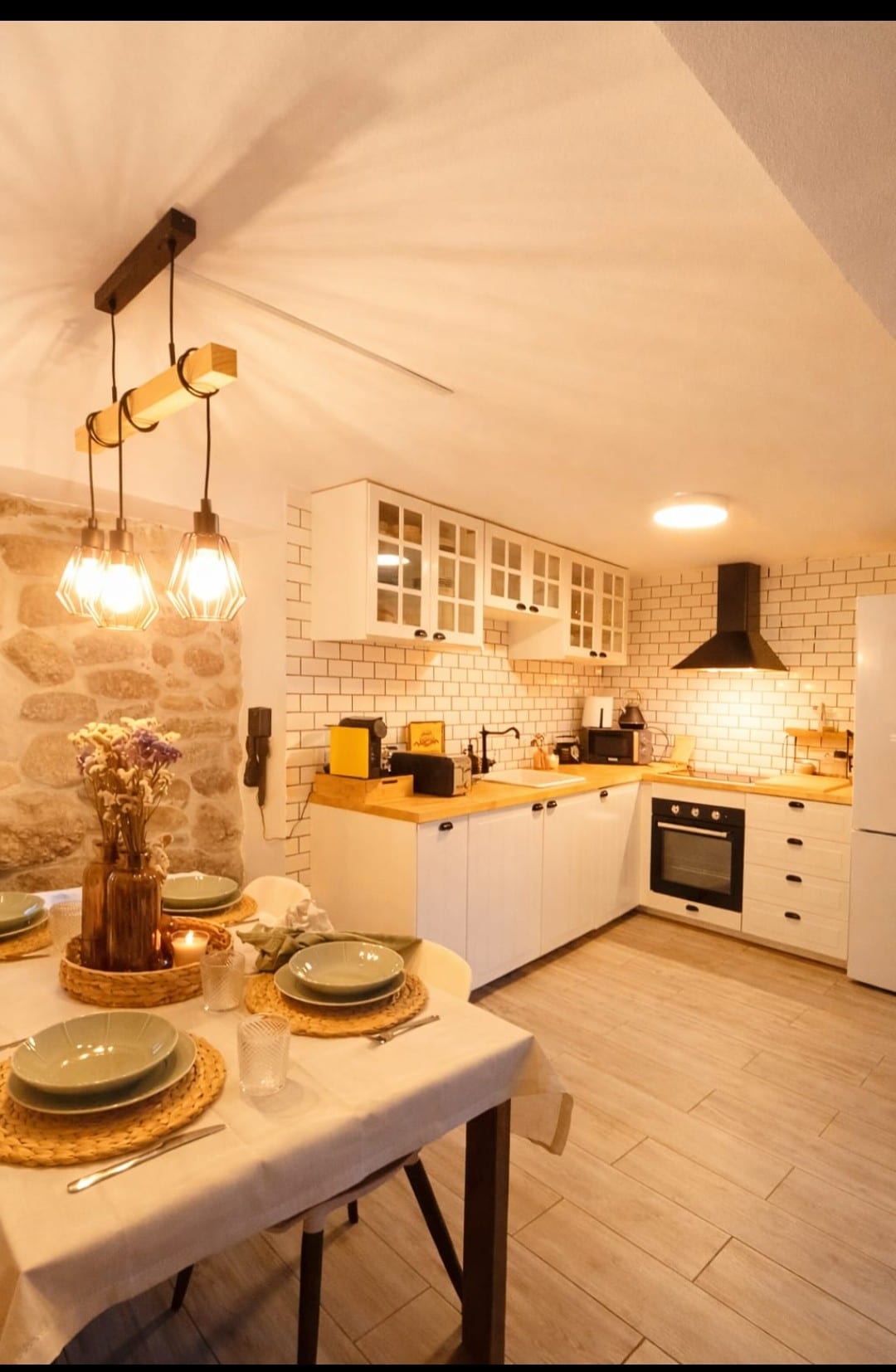 Apartment with 3 bedrooms, one of them an en-suite, 1 social bathroom, 1 modern and spacious kitchen, with living and dining room, with Wi-Fi available. Outside, there is space to park the car, it has a basketball hoop and ball, a vegetable garden, a swimming pool with a cover, a leisure and dining area, with a barbecue grill, these spaces being private to the customer. Very quiet area, close to rural villages and very close to the border.