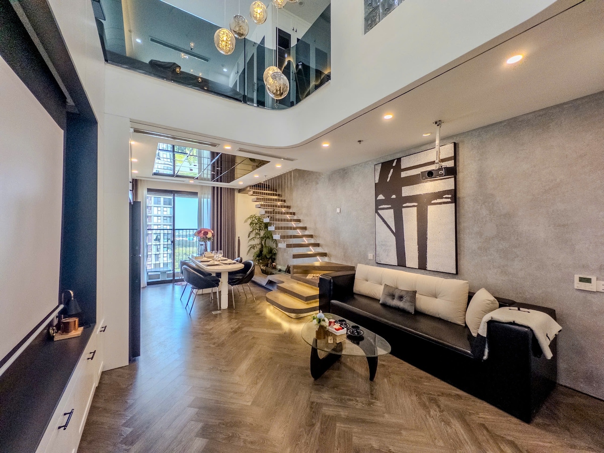 A high-end 2-bedroom, 2-bathroom apartment with a separate shower and infrared sauna, located at Landmark 2 – Swanlake Onsen, in a prime central area of Ecopark. The apartment features panoramic views of Swan Lake Park, island villas, and the British University, with easy access to a hot mineral Onsen, golf course, EPGA Academy, food street, supermarket, restaurants, cafés, gym, spa, four-season outdoor pool, landscaped gardens, a Japanese Koi pond, and a mini Safari park.
