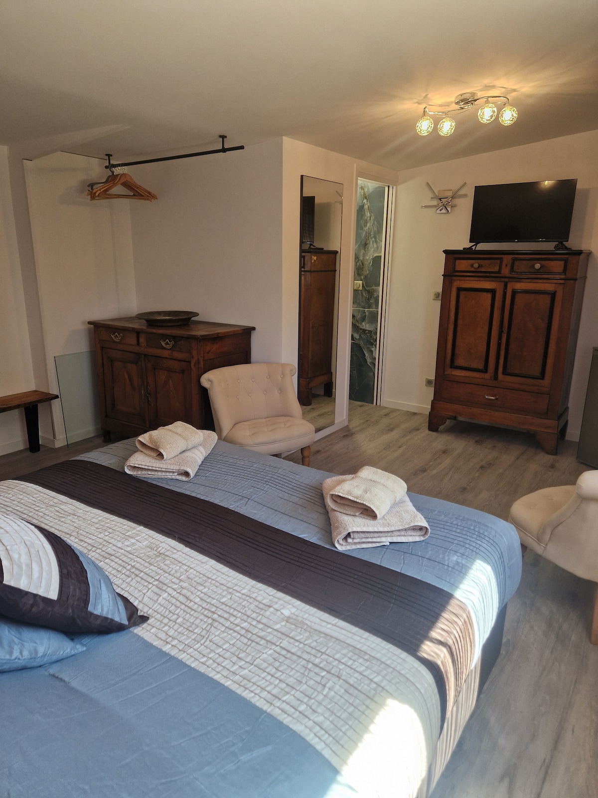 The California room is a small chalet, for 2 people, with private bathroom and outdoor terrace equipped with a summer kitchen with everything you need to cook, you will also have access to the pool with deckchair and jacuzzi. The Myami villa is a haven of peace and tranquility that has been working for 12 years for the well-being of its guests. You are also 5 minutes from the beach. And for the lucky ones, on Wednesday you have the Sanary market, which is the best market in France, next door.