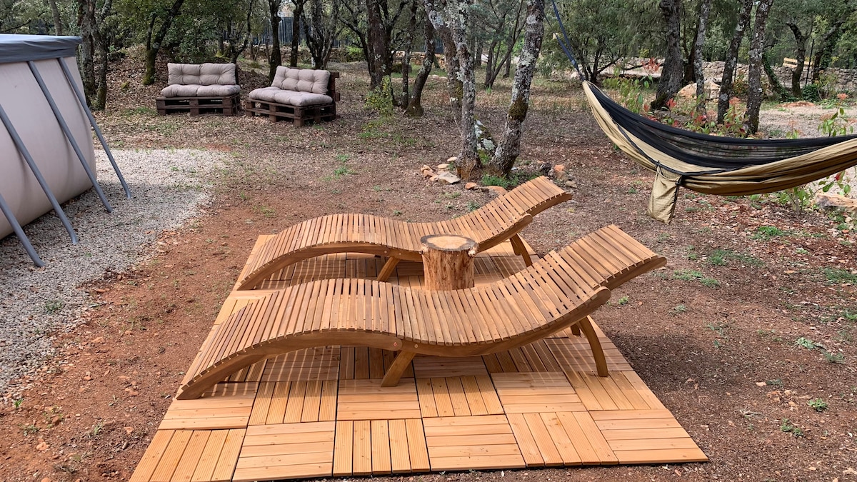 We offer an outbuilding in Nans-les-Pins (Var) on our 1700 m2 property, easy to access, surrounded by oaks and 500 meters from the center of the village. Pool authorized and shared for a minimum stay of 2 nights between 11 a.m. and 5:30 p.m. No visits from family or friends. Airbnb rentals are based on occasional accommodation to enjoy the area and not to enjoy the pool that we make available to passing travelers and not a pool stay.